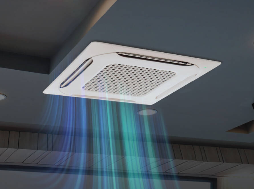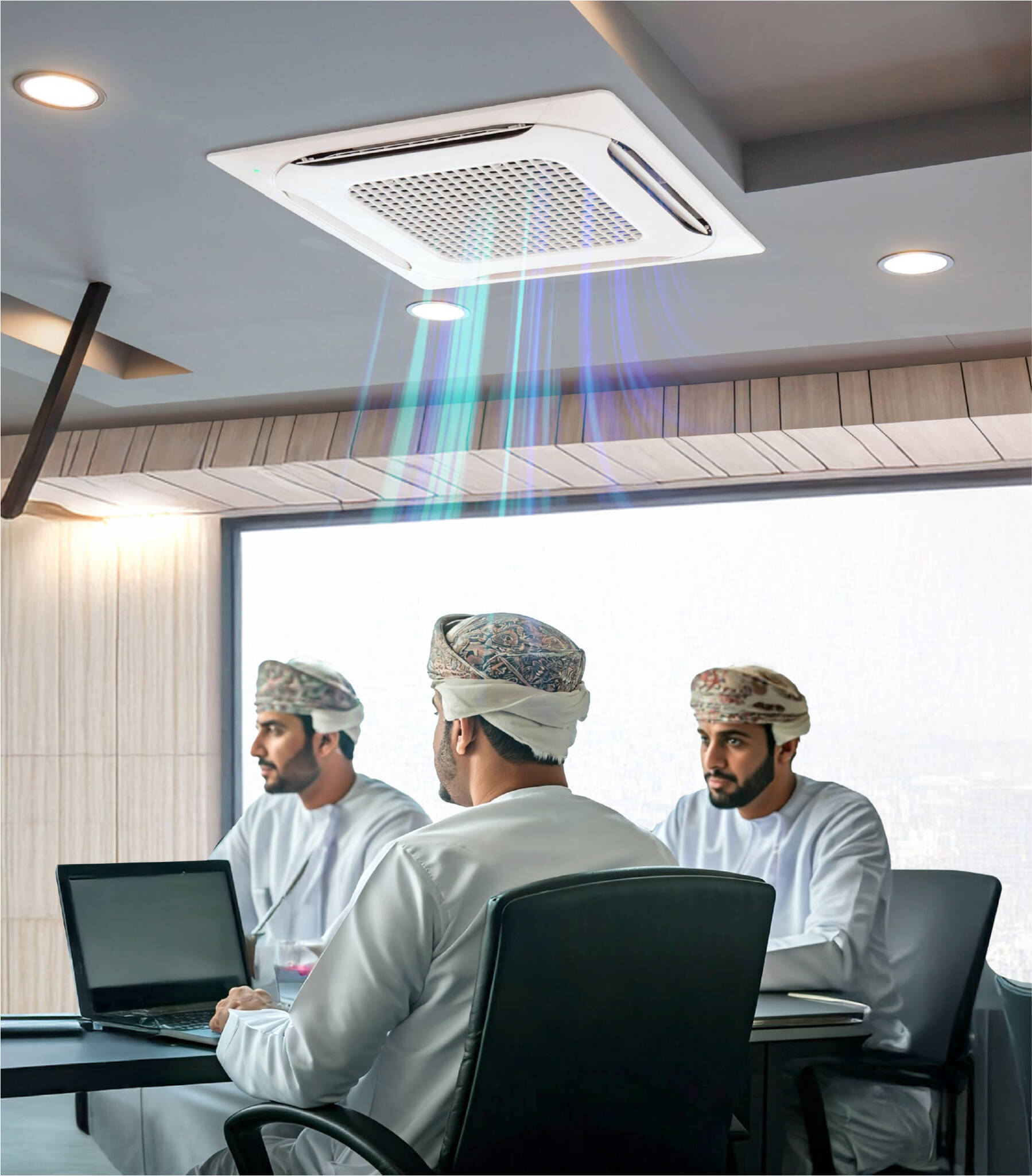 Premium ceiling cooling for offices, showrooms & more — solar powered.